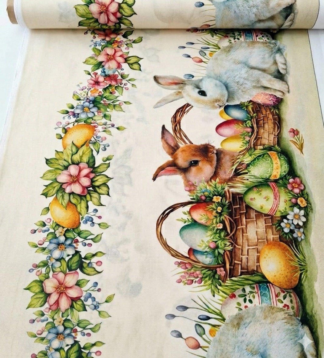 Platno za stolnjak za Vaskrs – Zeke i korpa sa jajima