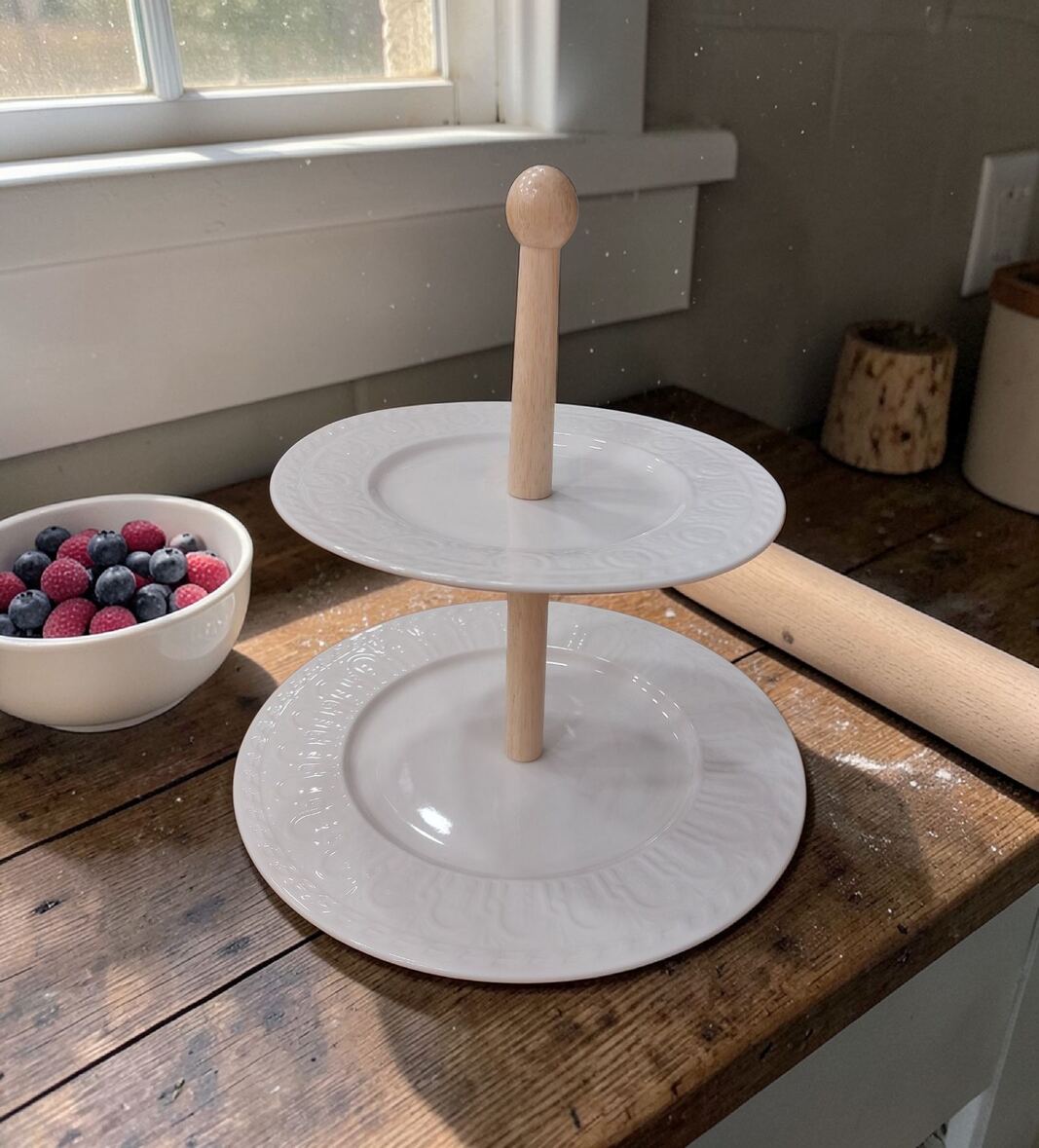 - Dimenzije: gornji nivo 28 cm, donji nivo 22 cm – prostran i funkcionalan za raznovrsne poslastice