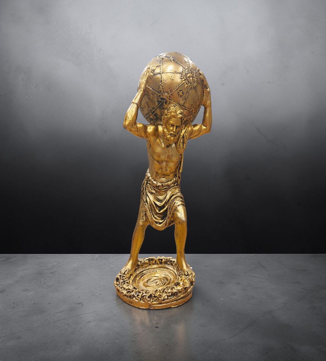 Predstavljamo vam impresivnu figuru Atlasa koji u rukama iznad glave nosi teret kamena – snažan simbol izdržljivosti, odgovornosti i snage. Inspirisana mitološkom pričom, ova figura verno prikazuje trenutak večnog napora i nepokolebljive volje.
