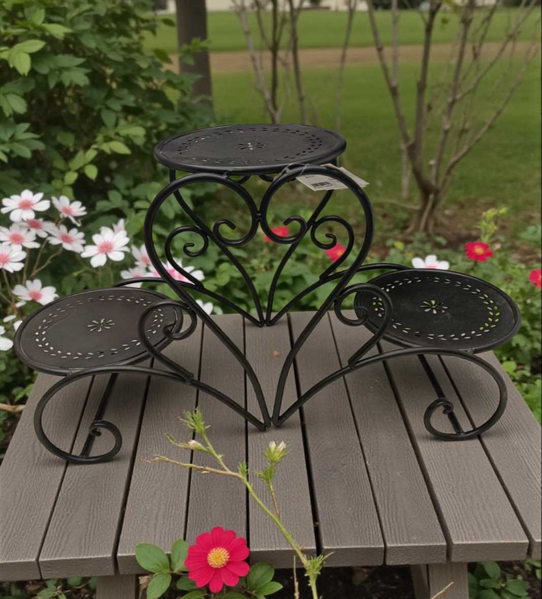Praktičan i dekorativan metalni stalak za cveće namenjen za tri saksije. Izrađen od čvrste metalne konstrukcije u elegantnoj crnoj boji, pruža stabilnost i dugotrajnost uz moderan izgled koji se lako uklapa u svaki prostor.