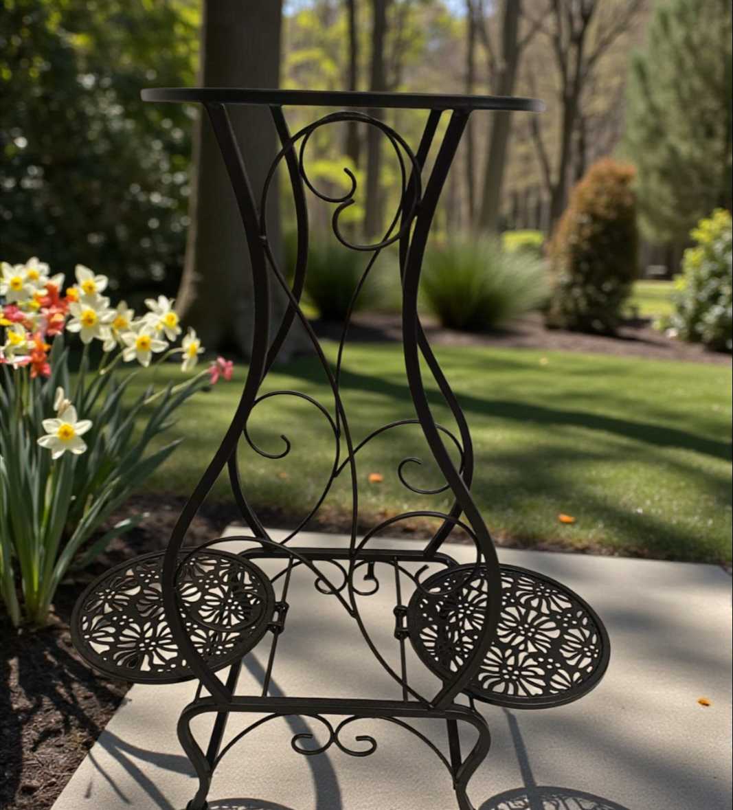 Praktičan i dekorativan metalni stalak za cveće namenjen za tri saksije. Izrađen od čvrste metalne konstrukcije u elegantnoj crnoj boji, pruža stabilnost i dugotrajnost uz moderan izgled koji se lako uklapa u svaki prostor.