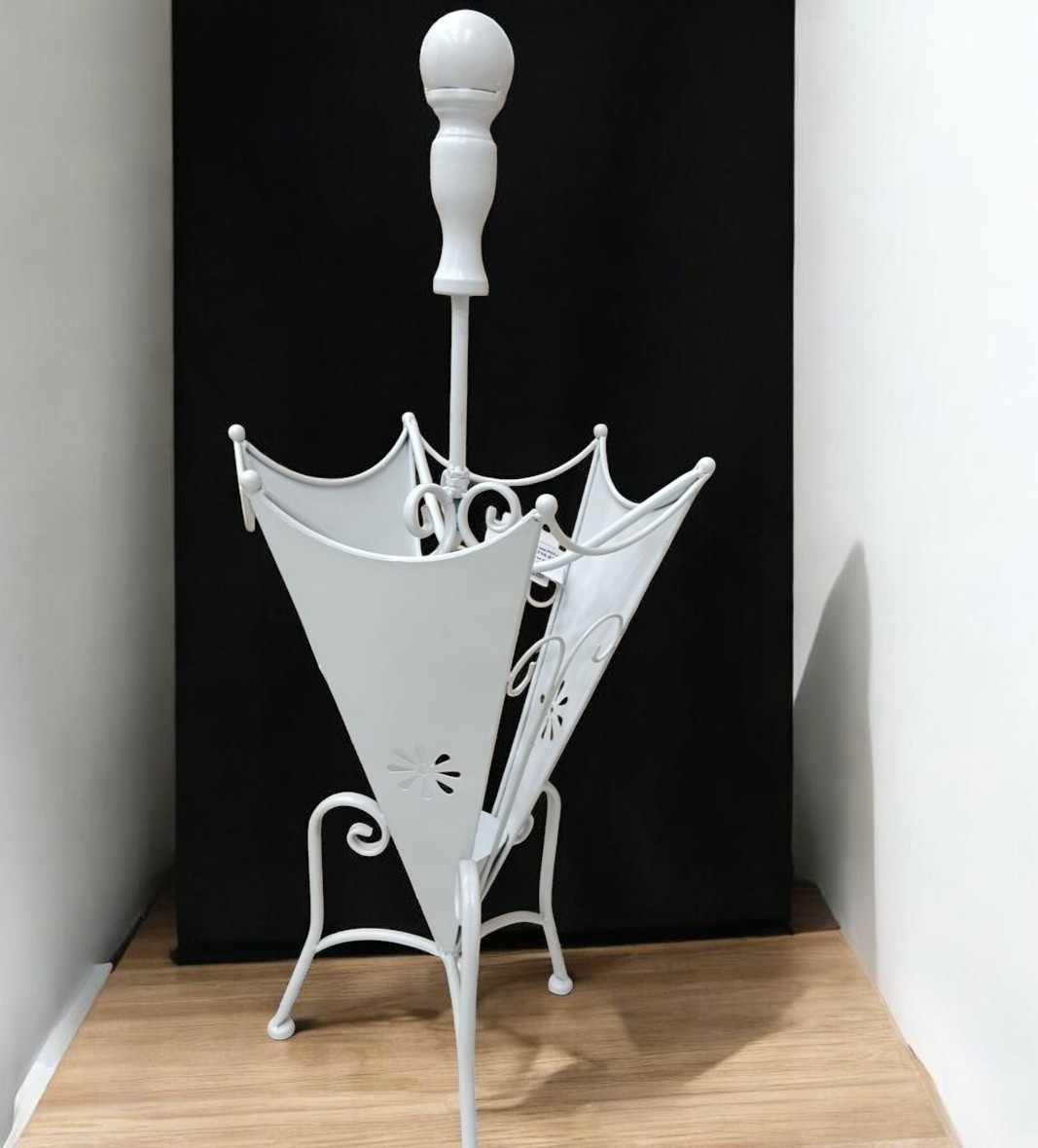 Beli stalak za kišobrane praktičnog i elegantnog dizajna, namenjen za uredno odlaganje kišobrana kod ulaza u dom ili kancelariju. Stabilan i funkcionalan, čuva prostor i dodaje organizovan izgled prostoru.