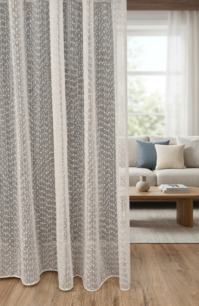 Unesite prefinjenost u svoj dom uz zavesu sa vezom na tilu, koja se ističe bogatim vezom, prelepim dezenom i lepršavim padom. Zahvaljujući laganom i kvalitetnom materijalu, ova zavesa unosi dozu luksuza u svaki prostor, dok njena neutralna boja omogućava lako uklapanje u različite stilove enterijera.