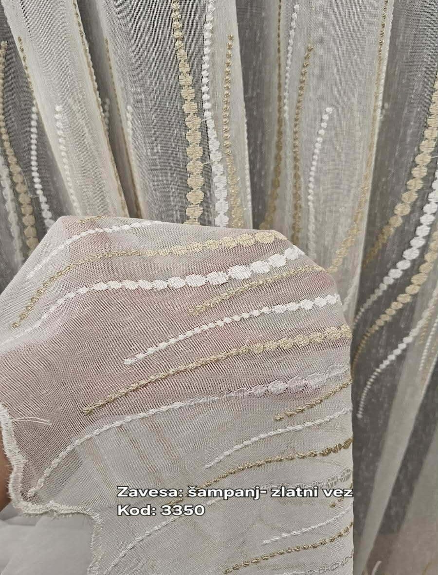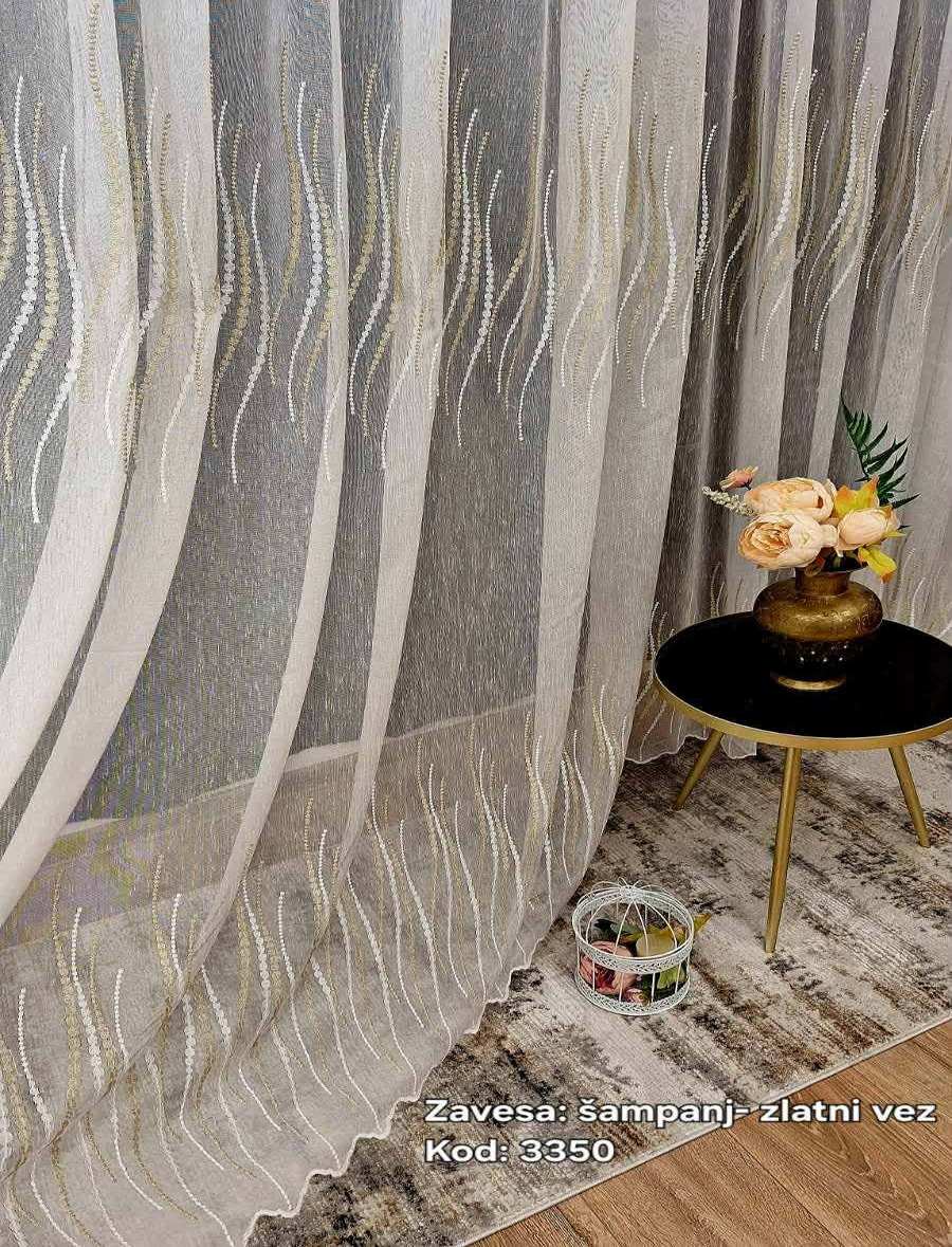 ZAVESA OD TILA-boja:šampanj-zlatni vez; šifra:3350