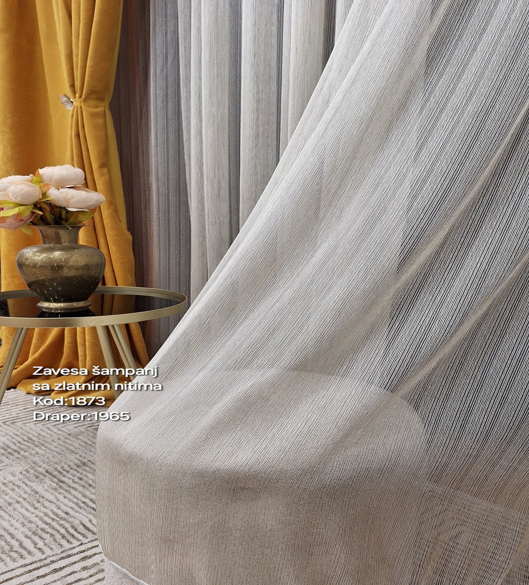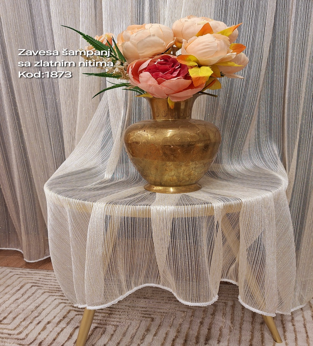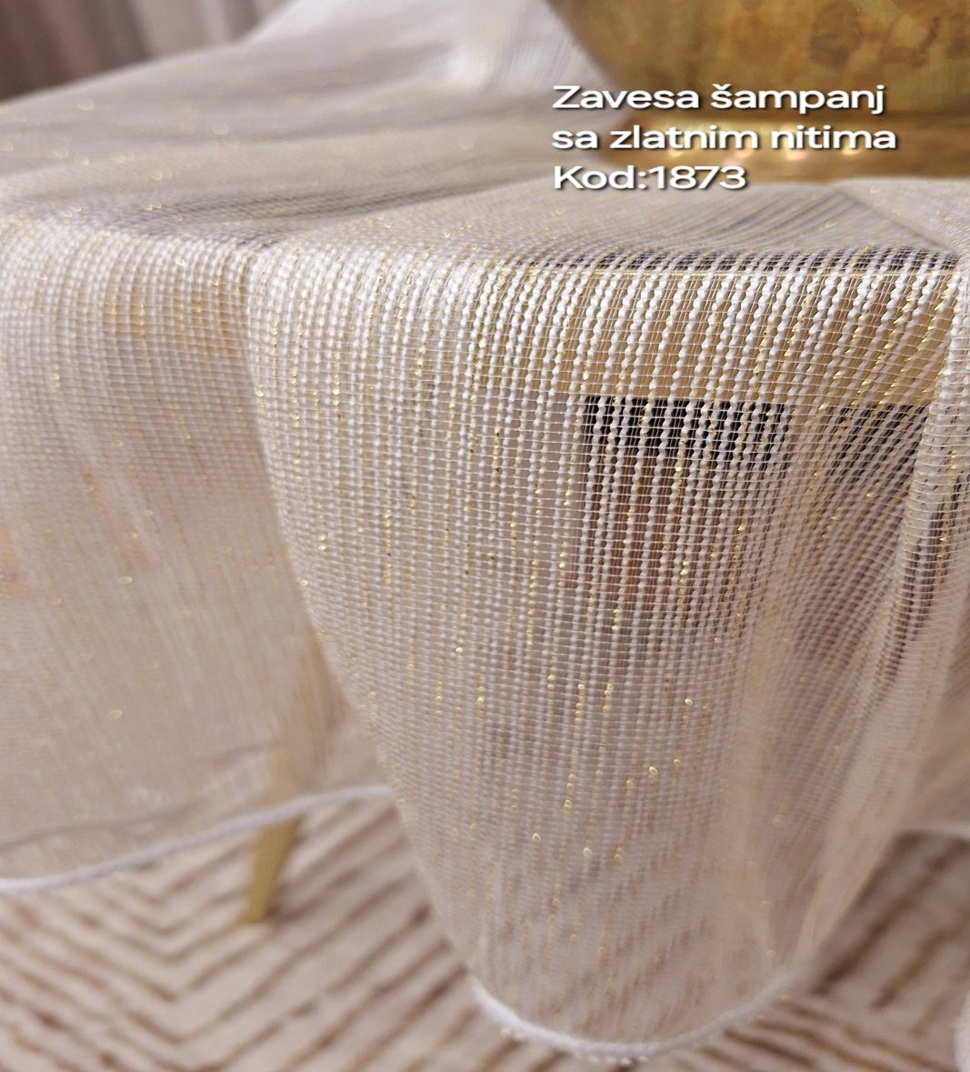 Zavesa vez na tilu- boja: šampanj zlatne niti-šifra: 1873